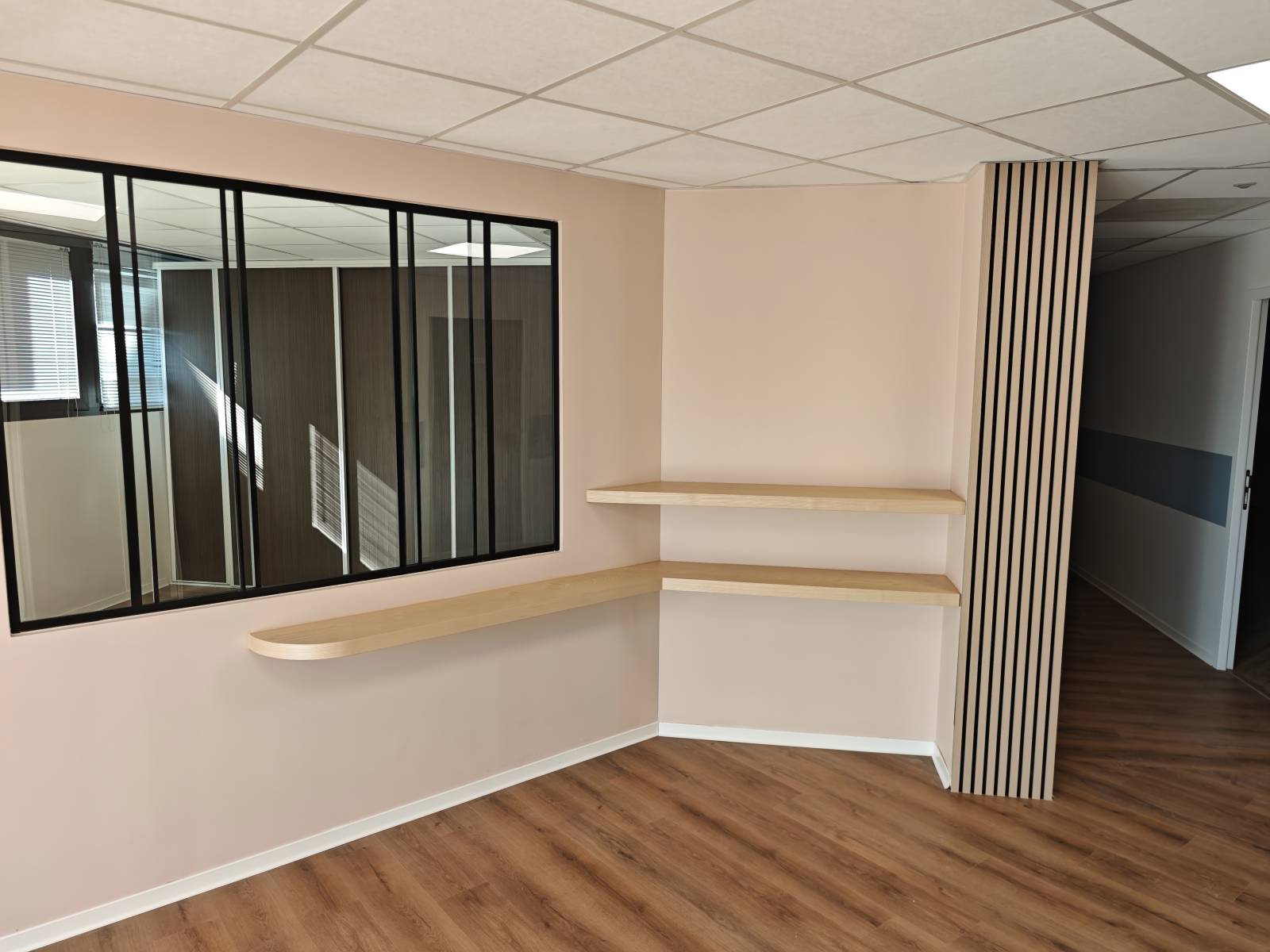 Lors de la phase de mise en peinture de bureaux, l'application au pistolet airless est souvent préconisée pour obtenir un tendu parfait sur les grandes surfaces de cloisons sèches. Cette technique assure une uniformité de grain indispensable dans un espace de travail à haut standing.