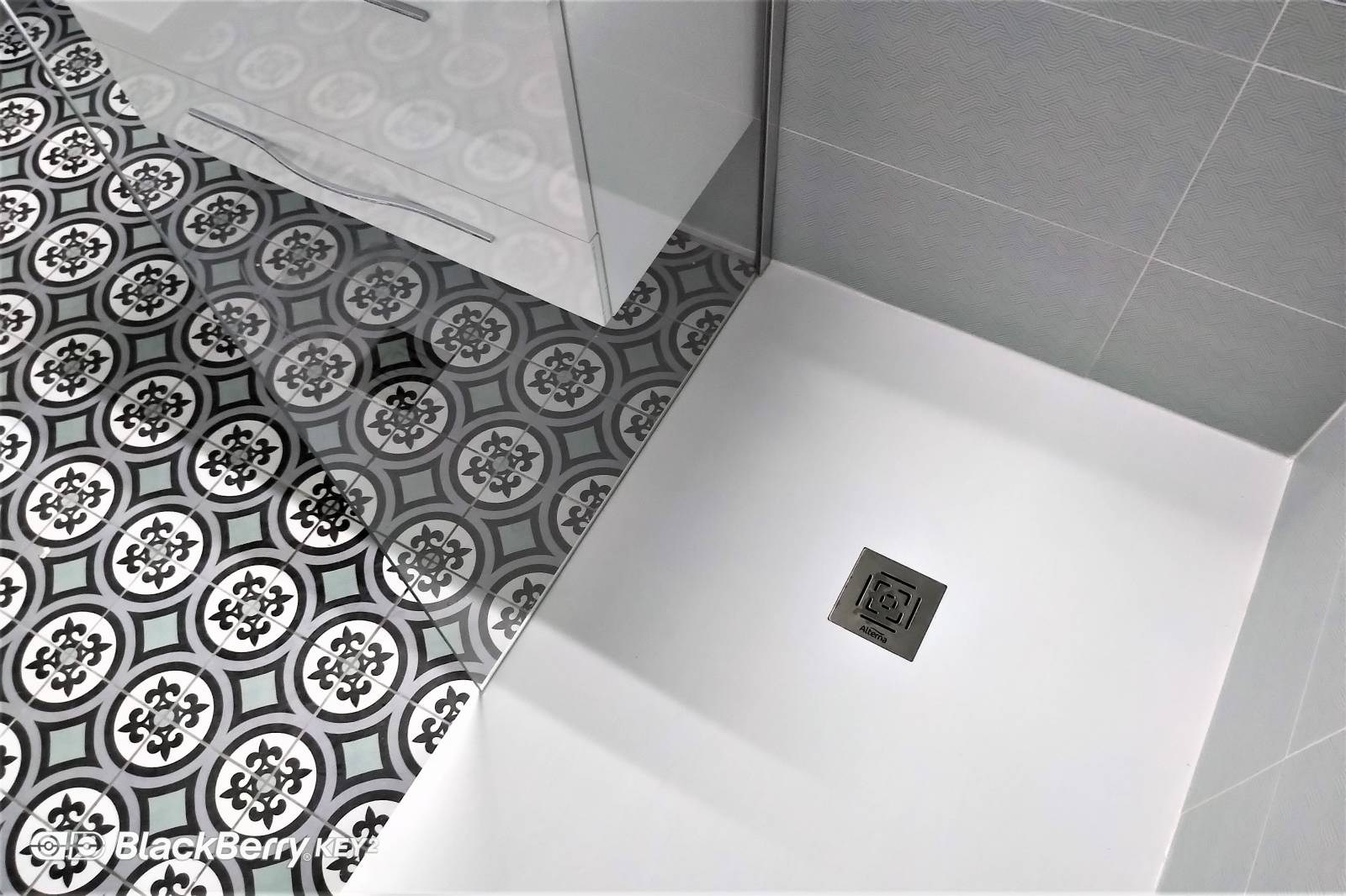 Pour ce projet sur Montpellier agglomération, nous avons choisi un receveur extra plat blanc de dimension de l'ancienne baignoire. Ceci afin d'apporter le plus de luminosité dans la pièce et de mettre en exergue les carreaux de ciment au sol.