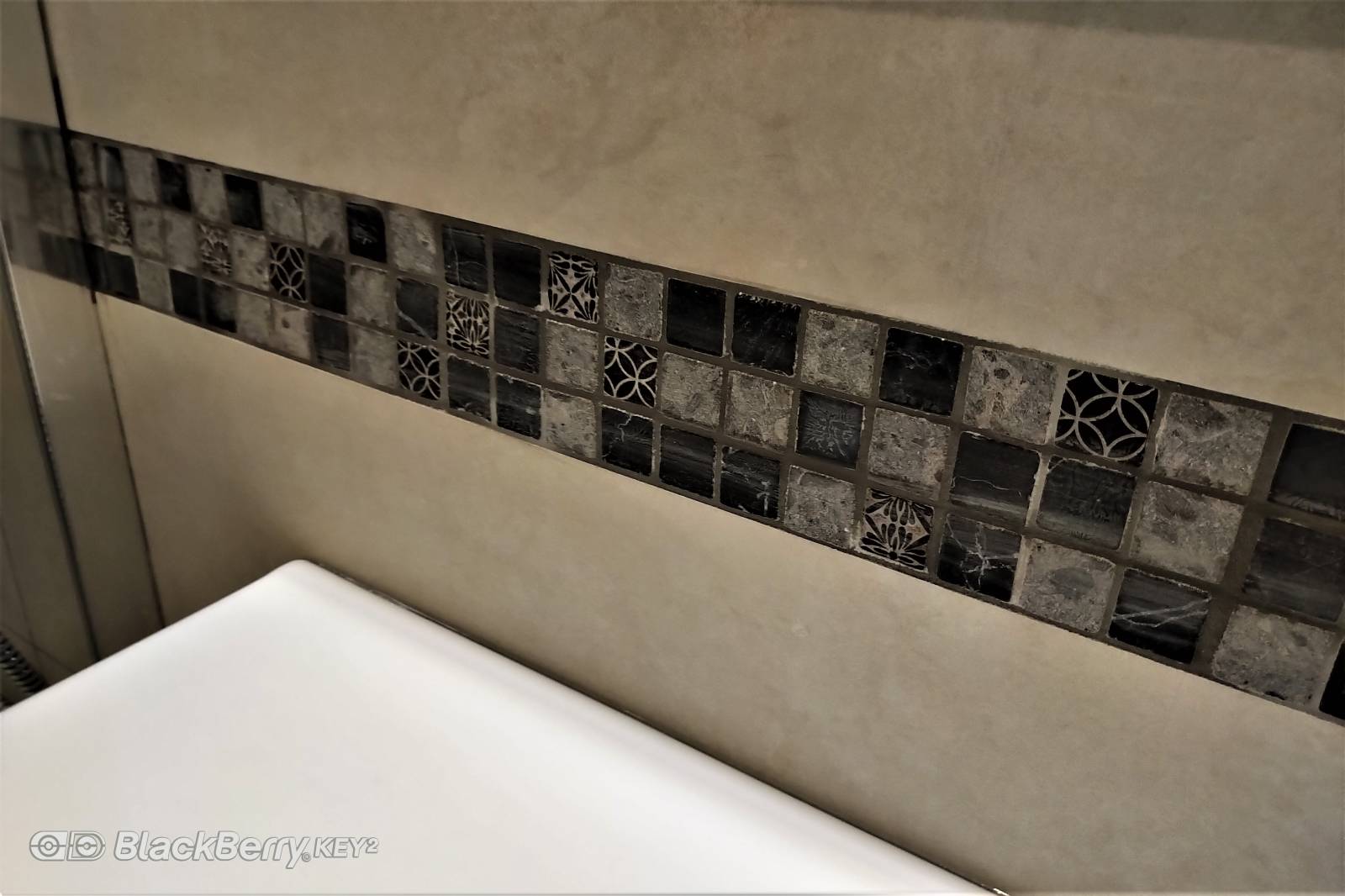 Une colonne de douche avec pommeau a été fixé pour parfaire cette espace douche.