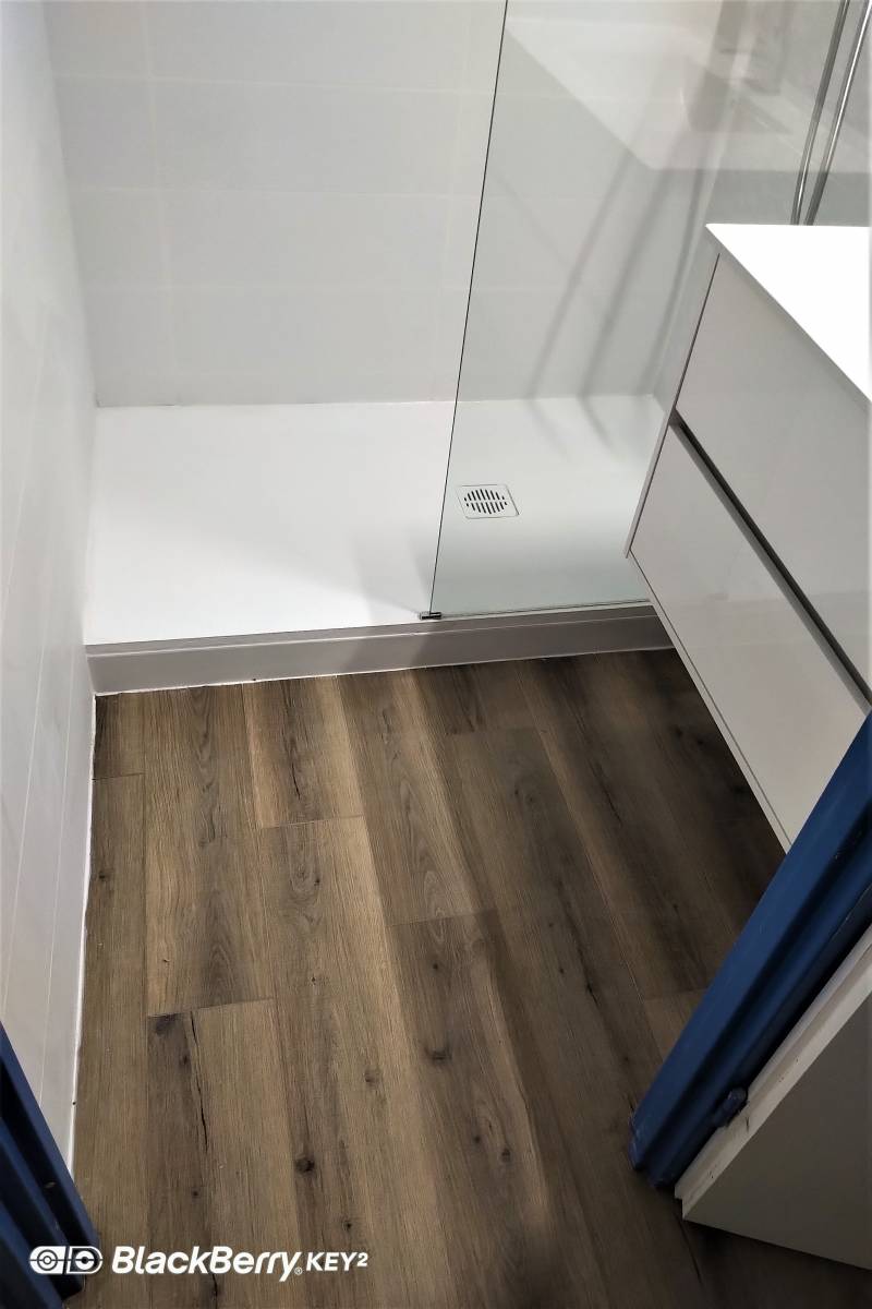 Pour finaliser cette réalisation au Grau du roi à proximité de Montpellier, nous avons opté pour la pose d’un parquet sur toute la surface afin d’uniformiser les sols de la salle de bain, toilettes et entrée de l’appartement.